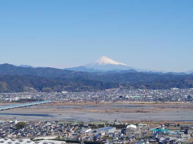 正面に富士山、右手に駿河湾と伊豆半島、左手に南アルプスの山々、眼下には雄大に流れる大井川、そして周辺に広がる茶畑と、静岡県を代表する景色が一望できる公園。また夜景は「日本夜景遺産」に登録されており、市街地の夜景と大井川や茶畑の明暗が、富士山や駿河湾のシルエットも含め絵画のように広がる。3月下旬~4月上旬には、公園の一角にあるカタクリ園が期間限定で開園する。