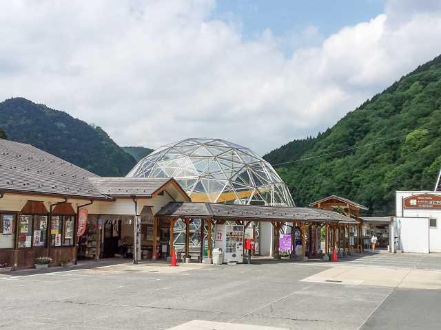 広島県で最初の道の駅として発足。「ガラスのドーム」と開放感のあるレストラン、特産品売り場、川沿いの公園施設などがある。