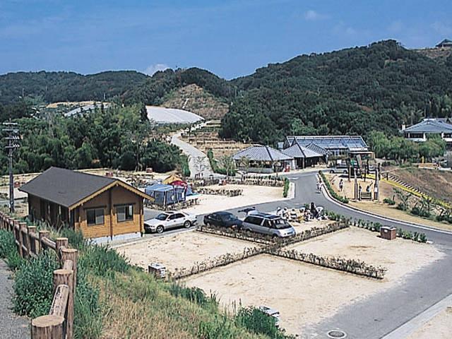 温泉もある公園内のキャンプ場。オートサイトは全区画AC電源と炊事場付きで、ゆったり過ごせる広さ。宿泊施設のログハウスをはじめ、場内の設備も整っていて快適に利用できる。