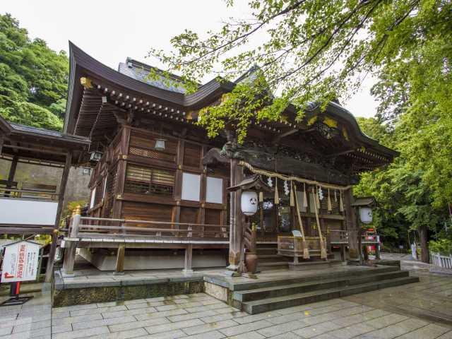 榛名山の神を祀る神社で、1400年の歴史をもつ。随神門をくぐると神域に入り、長くゆるやかな参道を上がっていくと、荘厳な建物や七福神が次々と現れる。なかでも行者渓は強大なパワーがみなぎるといわれている。社殿裏にはご神体を祀る巨大な御姿岩がある。