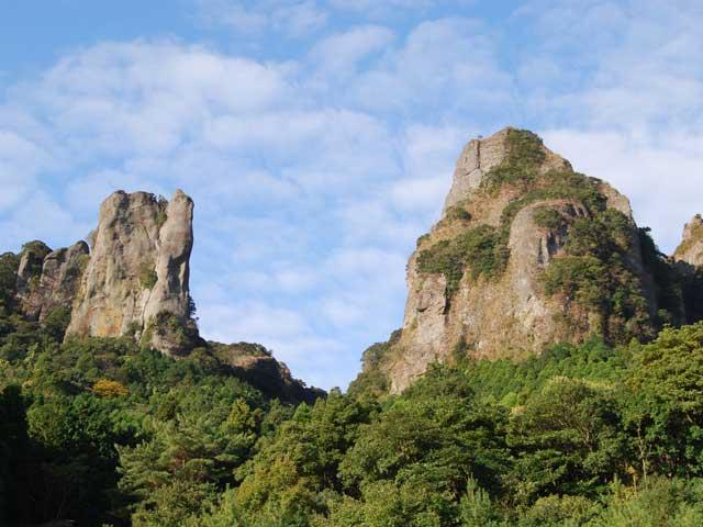 標高約518m。かつての山岳信仰の霊山であり、国の天然記念物のカネコシダをはじめ、珍しい植物の宝庫としても有名。21世紀に残したい日本の自然100選に選ばれている。