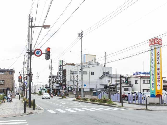 JR山形新幹線天童駅から山交バス天童温泉行きで2分、天童温泉下車すぐ