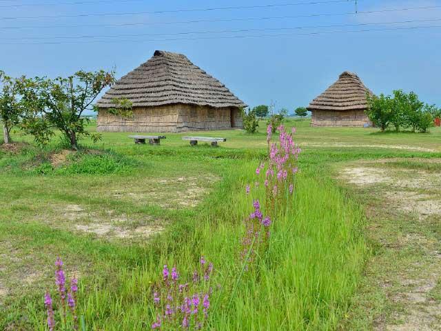 古墳時代の「ムラ」の生活の様子を体験しながら学べる施設。公園に住居や水田などを再現するほか、ガイダンス施設では勾玉作りやジュズダマクラフトなどに挑戦できる。