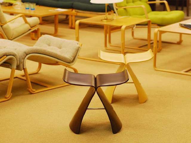 成形合板家具を得意とする老舗の家具メーカー。本社ショールームでは、作品はもちろん、歴史や技術に触れることもできる。見学は工場が稼働している平日に(要予約)。