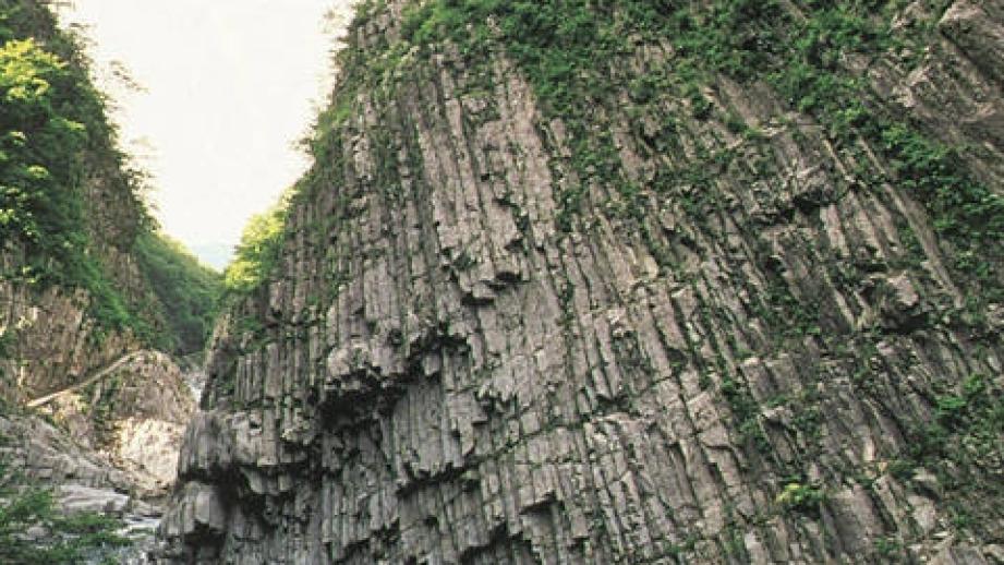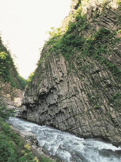 清津峡小出温泉から上流の八木沢まで約12.5kmにわたる渓谷。日本三大峡谷のひとつとされ、渓谷トンネルから眺められる柱状節理の岩肌と清津川の清流は、季節を問わず素晴らしい。
