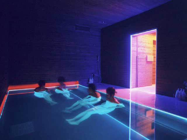 谷崎潤一郎の『陰翳礼讃』から着想を得たアート作品。地面より2mほど床を高くした、豪雪地帯の伝統様式に沿った設計。可動式の屋根、体が光に包まれる大浴場など、光と向き合う多彩な仕掛けが随所にある、世界的にも珍しい宿泊施設だ。