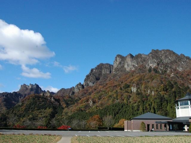 標高は1104m、妙義荒船佐久高原国定公園を代表とする景勝地。金洞山にある石門群の奇勝は国内の代表的な山岳景勝として有名だ。春は桜、秋は紅葉が美しい。