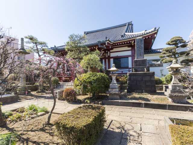 都の旧跡に指定されている日蓮宗の寺。江戸中期の儒者・斉藤鶴磯、江戸後期の画家、司馬江漢の墓をはじめ、芥川龍之介、谷崎潤一郎ら著名人の墓がある。