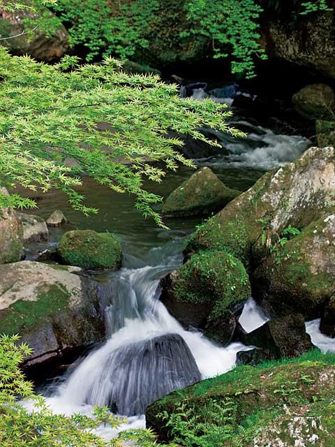 豊田市東部を流れる仁王川の渓谷。龍門園地にある妙昌寺から片道1時間のハイキングコースが整備されている。変化に富む風景が続いている。