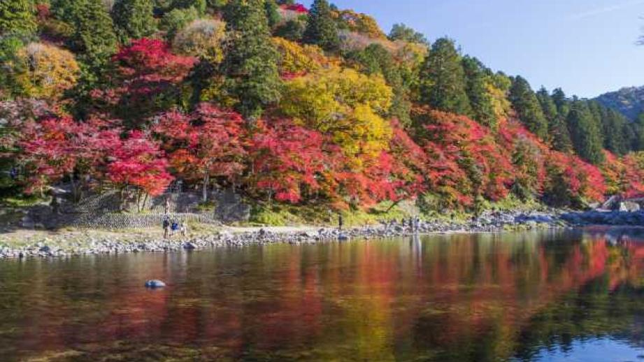 山々に囲まれた香嵐渓では、四季折々の自然美を楽しむことができる。巴川沿いの秋だけでなく、新緑も美しい。約1kmにわたり山全体が紅葉する秋の風景は圧巻。