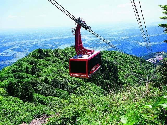 筑波山中腹のつつじケ丘から標高877mの女体山の間を約6分で結ぶロープウェイ。ゴンドラの大きな窓から眺める関東平野のパノラマと、間近に見える筑波山が美しい。