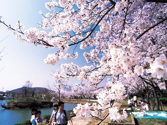 春には池の周囲を取り囲むように250本の桜が咲き競い、花見客で賑わう。筑波山をはじめ山々を背にするロケーションと、淡いピンクの花が水面に映り込む様が風流だ。8月にはハスの花も見頃に。