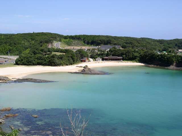 日本の渚・百選に選ばれている美しい浜。対馬ではめずらしい粒子の細かな白砂が広がり、海岸は遠浅。毎年、海開きのあとは海水浴客でにぎわう。