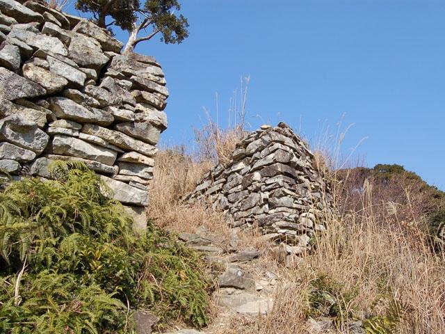 天智6(667)年、大陸からの侵略にそなえて大和朝廷が築いた朝鮮式山城の金田城。高さ2m以上の城壁と城門、水門を目にすることができる。国の特別史跡。