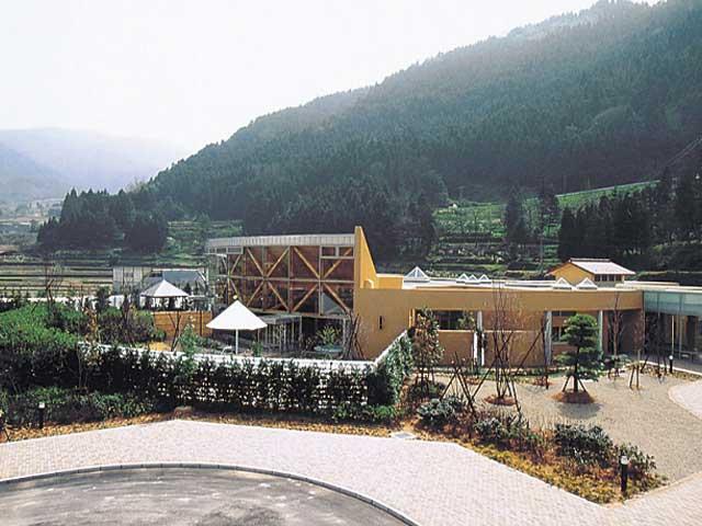 城山と青野山を望む広々とした大浴槽、岩と緑に囲まれた露天風呂、直径2.5mもの大きな酒樽風の檜風呂などがそろう。レストランや特産品を販売するコーナーもある。