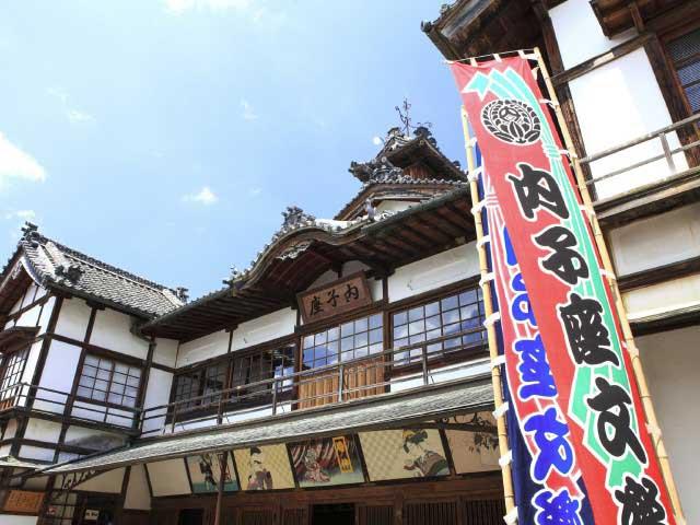 木ろうや生糸などの生産で栄えた大正5(1916)年、地元の有志により建てられた劇場。農閑期には歌舞伎や文楽などが上映された。廻り舞台、奈落、花道なども見学できる。