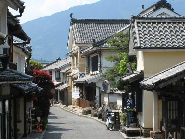 重要伝統的建造物群保存地区に選定された風情ある通り。約600mにわたって商家や町家が約120棟建ち並び、木ろう生産で栄えた往時をしのぶことができる。