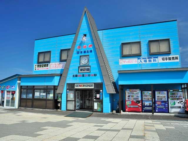 入り口の三角屋根は宗谷岬をイメージしている。到着年月日と時刻が記された“最北端到着証明書”を発行している。最北端グッズも買えるので、旅の記念に手に入れてみよう。