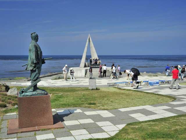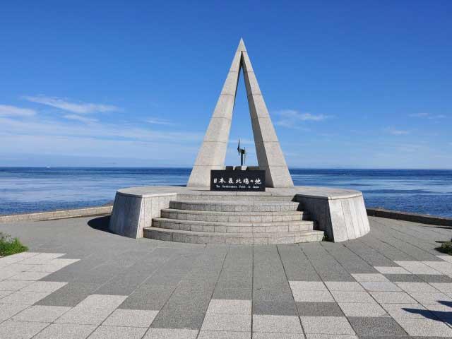 北緯45度31分、本土の最北端に位置する岬。突端には日本最北端の地の碑が建ち、すぐ近くには世界地図に名を残す間宮林蔵の立像やモニュメントが多数ある。ライトアップされた夜は幻想的な雰囲気に。