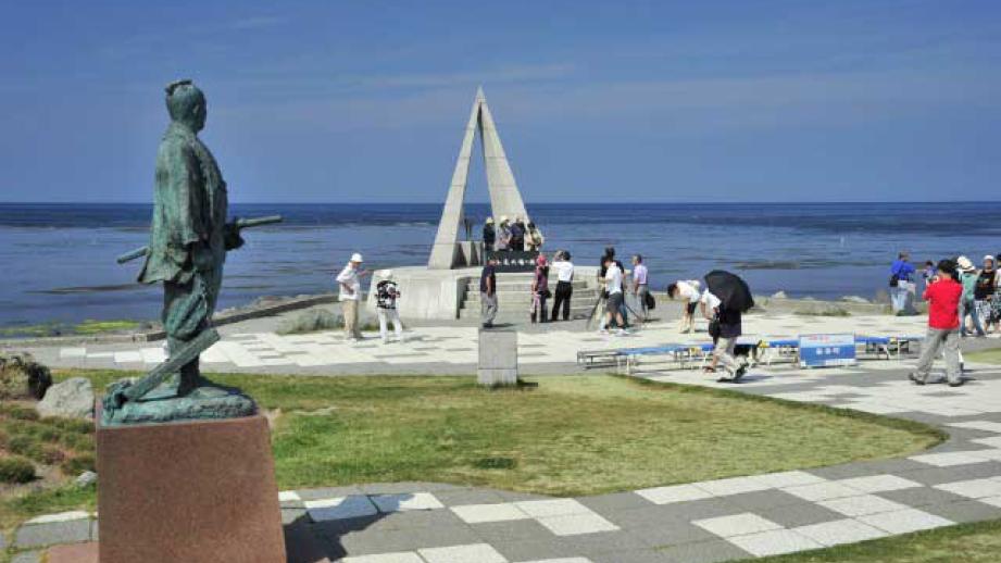 東に宗谷岬、西に礼文島、南西に利尻島、はるか北にはサハリンを見晴らせる岬。また、夕日の美しい景勝地としても知られる。日没時刻をチェックして訪れたい。