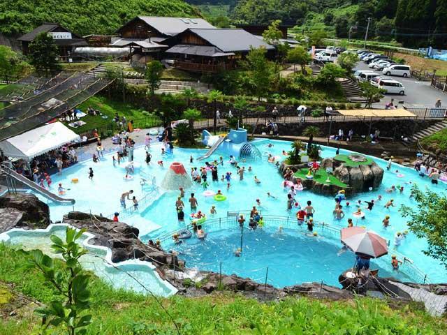 新鮮な農産物や手作り田舎惣菜を販売。旬の食材をふんだんに使った家庭料理が人気のバイキング、露天風呂のある温泉施設も完備。川遊びやカヌーなど自然の中でも遊べる。