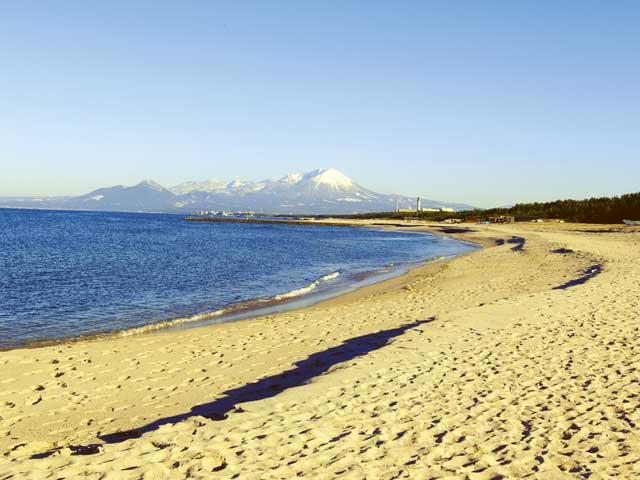 美保湾と中海を隔てた弓ヶ浜半島の東側にあり、約20kmにわたって弓のように美しい弧を描く海岸。日本の渚百選、日本の白砂青松100選に選定されている。