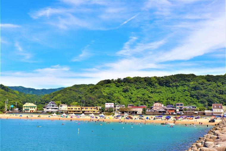 夏は家族連れをはじめ、若者たちに人気のビーチとして賑わいます。関西屈指の魚釣りスポットでもあり、タイの一本釣りなどが有名です。