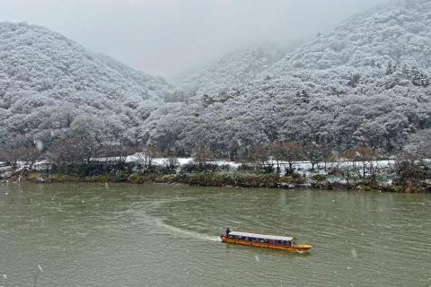 こたつ舟に乗りながら雪景色を眺めるのは最高のひと時。1人でも乗船可能なのでぜひ試してみてください!