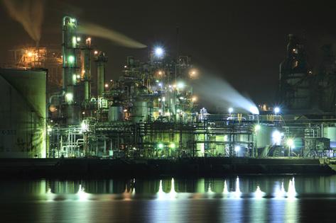 周南市(しゅうなんし)の沿岸部に広がる全国有数の石油化学コンビナート群。その幻想的な工場夜景を船上から楽しむクルーズツアーが人気です。