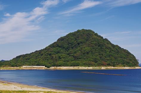 菊ヶ浜から眺める夕陽は指月山とのコントラストが絶妙です