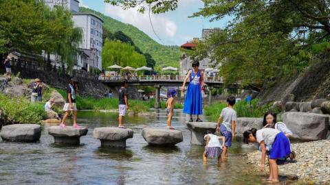長門湯本温泉は山口県最古の湯で、昼はのどかな川辺の風景、夜は幻想的なライトアップが楽しめる観光地です。