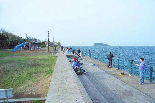 全長約500メートルのボードウォークに広がる海釣りスポット。猿島や房総半島を眺めながら、四季を通じて誰でも気軽に海釣りを楽しむことができます。東京湾に面した園内には、芝生広場や遊具、さらにトイレや水道、駐車場まで完備。子供連れのピクニックにも最適で、市民の憩いの場として親しまれています。