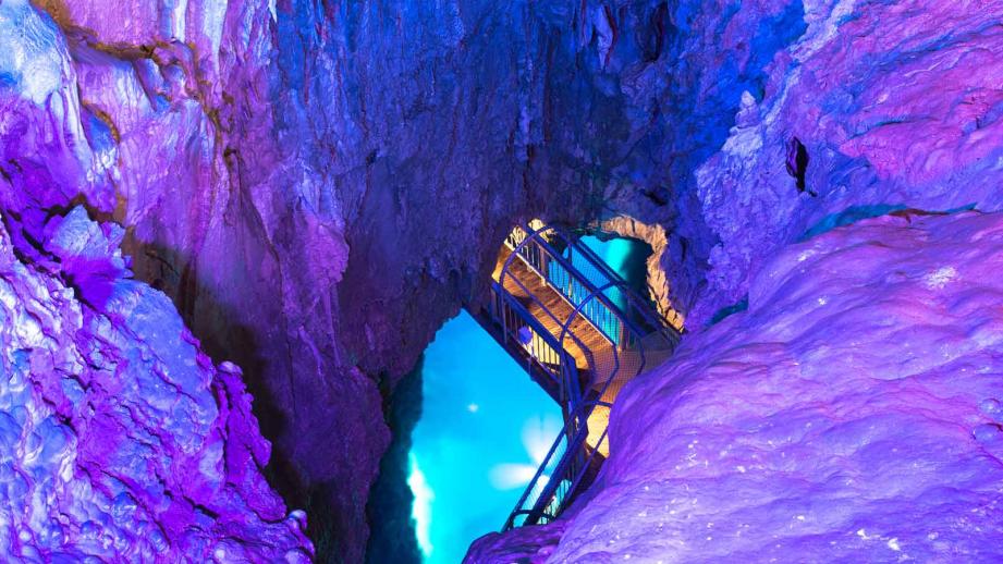総延長約1,270m、40分ほど歩いて見学できる鍾乳洞。白衣観音、金剛杖などと名付けられた数々の奇岩をはじめ、数十万年の歳月が形作った自然の造形を楽しめる。