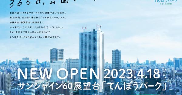 サンシャイン60の新展望台「てんぼうパーク」が4月にオープン!空と緑に囲まれる新たな眺望体験を提供 東京 2023/01/26 2022年秋よりリニューアル工事のために休館中だったサンシャインシティの展望台が、2023年4月18日に「サンシャイン60展望台 てんぼうパーク」としてリニューアルオープンします。