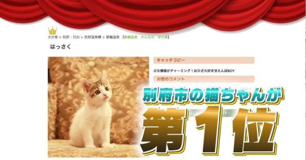 日本一の看板猫が大分に?すご~い猫ちゃん大集合SP 大分 2025/04/04 楽天トラベル「全国の宿 自慢の看板猫ランキング2025」で大分県別府市「かんなわ ゆの香」の「はっさく」が初エントリーで1位に。同じ別府市には殿堂入りの「おもちくん」も。大分県は猫の魅力あふれる宿が集結する猫天国だった。