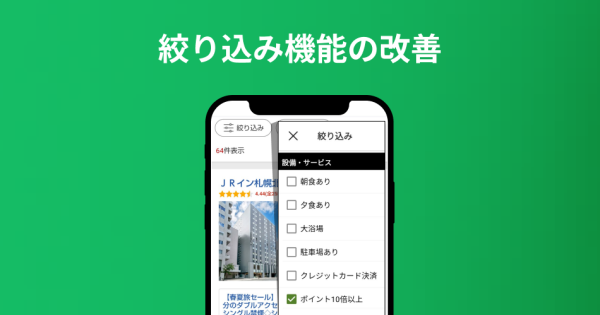 温泉宿の検索がスマートフォンとアプリでしやすくなりました 2022/11/18 楽天トラベルでは、お客さまより頂いたご意見・ご要望を真摯に受け止め、より良いサービスを提供できるよう、日々改善に取り組んでいます。このページでは、お客さまの声をかたちにした改善事例の一部をご紹介いたします。