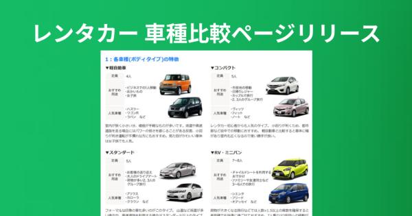 レンタカーの車種比較ページを作成しました 2019/02/25 楽天トラベルでは、お客さまより頂いたご意見・ご要望を真摯に受け止め、より良いサービスを提供できるよう、日々改善に取り組んでいます。このページでは、お客さまの声をかたちにした改善事例の一部をご紹介いたします。