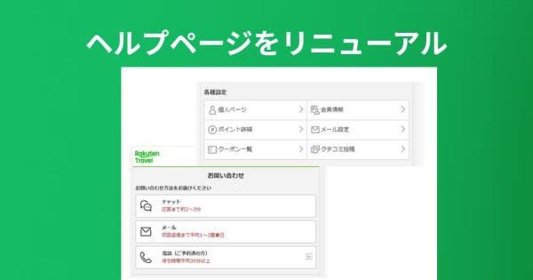 ヘルプページをリニューアルしました 2020/02/25 楽天トラベルでは、お客さまより頂いたご意見・ご要望を真摯に受け止め、より良いサービスを提供できるよう、日々改善に取り組んでいます。このページでは、お客さまの声をかたちにした改善事例の一部をご紹介いたします。