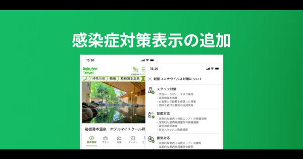 宿泊施設の新型コロナウイルス感染症対策のお知らせ表示を開始しました 2020/06/25 楽天トラベルでは、お客さまより頂いたご意見・ご要望を真摯に受け止め、より良いサービスを提供できるよう、日々改善に取り組んでいます。このページでは、お客さまの声をかたちにした改善事例の一部をご紹介いたします。