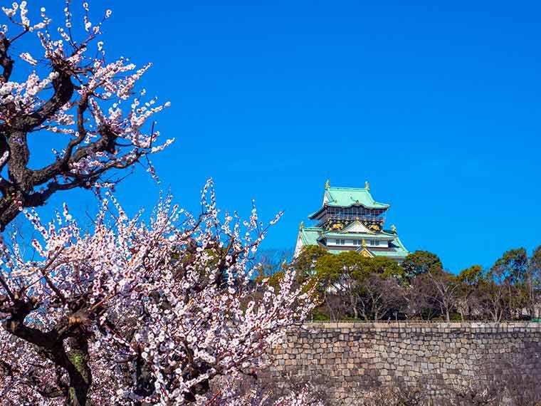 「大阪城公園」内には1,200本を超える梅が植えられた梅林が。100品種以上の梅が、1月から3月にかけて見頃を迎えます。