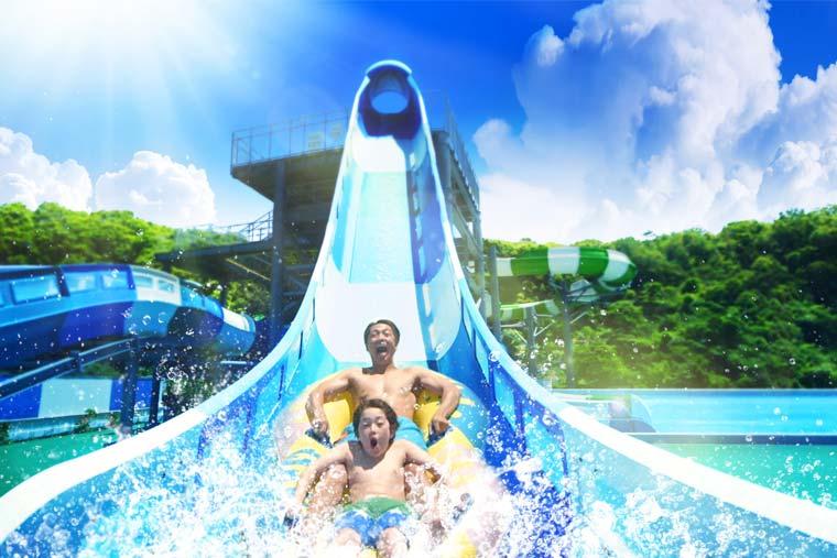 多彩なウォータースライダーを備えたプールやカヌー体験など、水のアクティビティが充実しているほか、グランピング、ホテル、温泉施設などもあり、たっぷり遊べます。