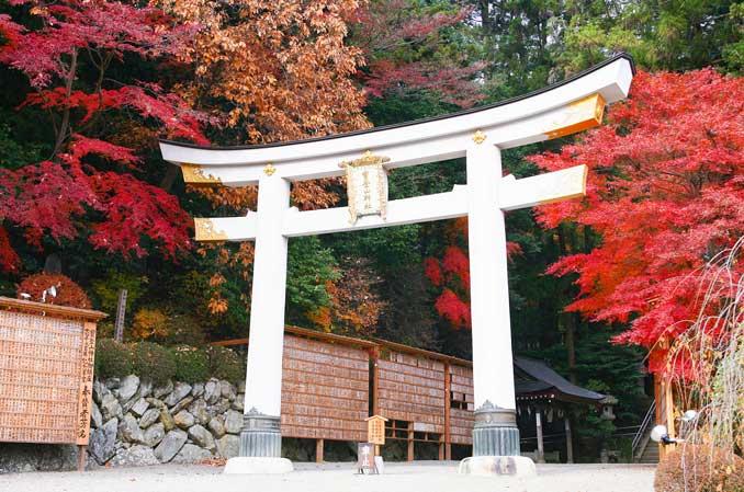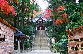 寛文元年(1661年)に建立された春日造りの本殿や極彩色の彫刻で飾られた権現造りの拝殿の他、宿泊や日帰り入浴のある興雲閣、喫茶店なども併設。紅葉時期にはライトアップも行われ多くの参拝客で賑わいます。