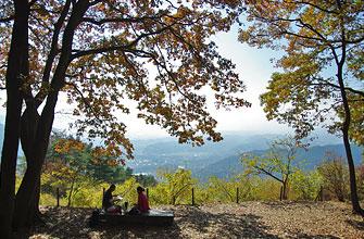 春と秋にサクラが楽しめる城峯公園。別名「十月桜」と呼ばれる冬桜が晩秋から初冬にかけて開花し、紅葉した樹木と共に美しい光景を見せてくれます。 首都圏自然歩道「関東ふれあいの道」コースにも指定されており、散策はもちろん、食事ができるレストハウスやバーベキューハウス、わんぱく広場、展望デッキなどの設備もそろえています。毎年10月の最終日曜日には「冬桜まつり」を開催。郷土料理や特産品の販売も行われ、観光客で賑わいます。