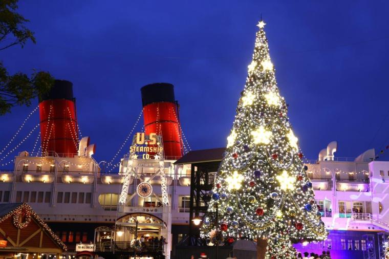 東京ディズニーシーでは昨年に続き、アメリカンウォーターフロントに高さ約15メートルのクリスマスツリーが登場します。S.Sコロンビア号をバックに写真を撮れば、東京ディズニーシーならではの雰囲気を楽しめそうです。