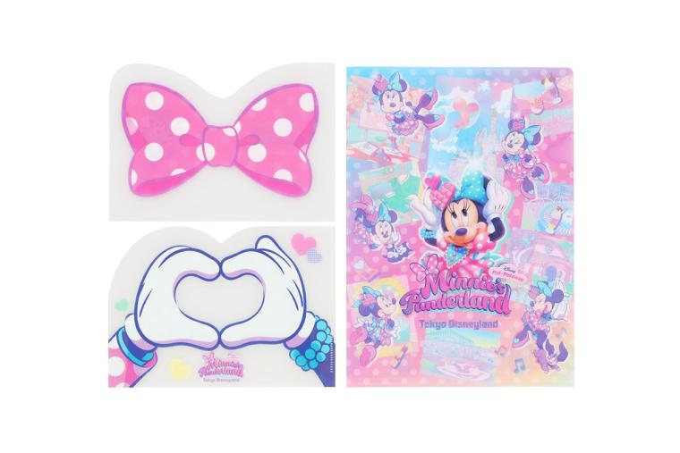 大切な書類やお手紙の保管はミニーにおまかせ!A4サイズとミニーのリボン、ハートの手の形にカットされた3枚セットで、リボンやハートの手はパークでの撮影に使うのもおすすめです。