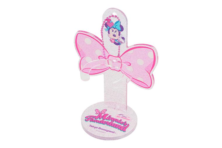 おうちではぬいぐるみバッジの保管用スタンドとしての役割も。パーツは組み立て式で、持ち歩く際はボールチェーンでつなぐことができるため、バラバラになる心配もありません。ミニーの大きなリボンをデザインしたスタンドは、スタンド本体だけでもかわいいアイテムです。
