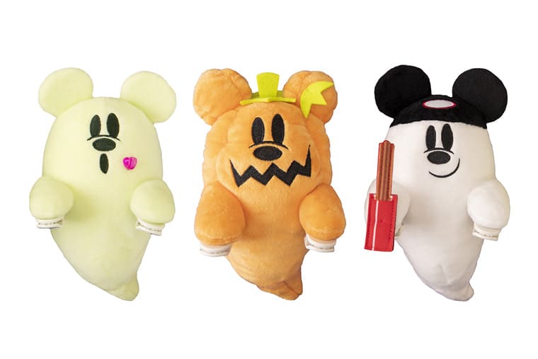 おばけ3キャラクターが、かぶりものを付けたりチュロスを持っていたりと、まるでパークで楽しんでいるような装いのぬいぐるみ。手の部分にクリップが付いていて、いろいろなところに付けて楽しめます。肩に乗せて連れ歩いたり、カバンにつけてもキュート。東京ディズニーランド、東京ディズニーシーのどちらでも手に入れることができます。