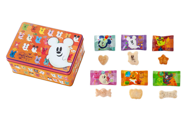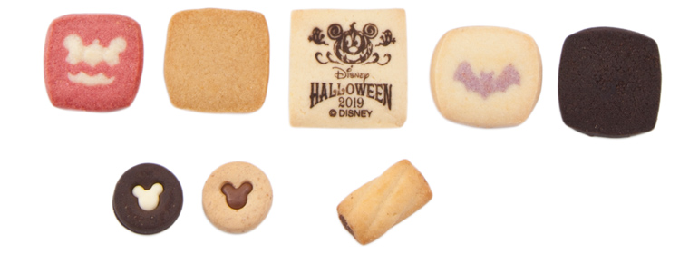 ハロウィーン限定のアソーテッド・クッキー。ミッキーマウスとミニーマウスが立体的に描かれた缶パッケージにたくさんのクッキーが入っています。チョコ、りんご&バター、バター&紫いも、キャラメル、ブラックココア、チョコクリーム、ホワイトクリームと味のバラエティが豊富。ミッキーマウスのシルエットを型どったクッキーやプリント入りのサブレなど、見た目にも楽しませてくれます。