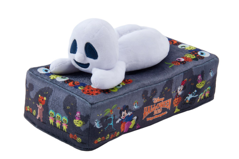 ゴーストが寝そべっているような姿がかわいらしいティッシュボックスカバー。カバー全体のイラストは、パレードをイメージしたデザインで、ハロウィーン仕様のキャラクターたちが色とりどりに並びます。部屋に置いてあるだけでハロウィーン気分を盛り上げてくれそう。存在感も実用性もバッチリで、プレゼントやお土産に喜んでもらえそうなグッズです。