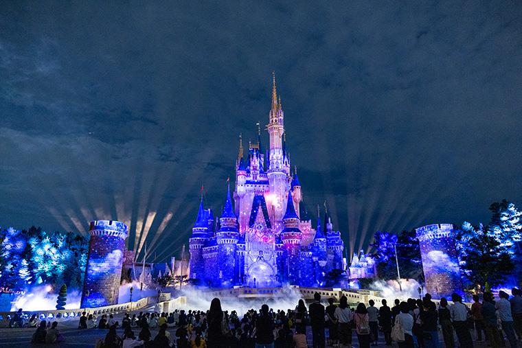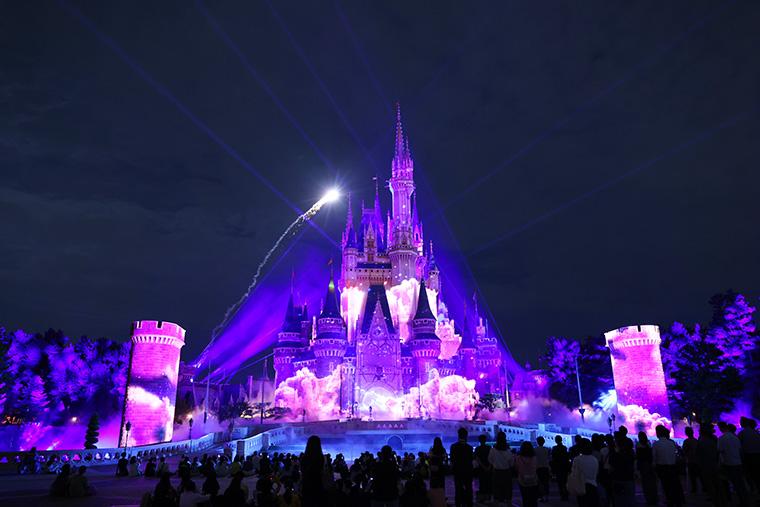 「Reach for the Stars」は1日1〜2回、東京ディズニーランドのシンデレラ城(キャッスル・フォアコート)で開催される約20分のキャッスルプロジェクション。ディズニーの名曲とともに映像とパイロ(花火)による壮大な光の演出が繰り広げられ、瞬きする瞬間も惜しいほど、キャラクターたちが次々と登場します。鑑賞エリアは自由に観覧できる場所に加え、「ディズニー・プレミアアクセス(有料)」、「東京ディズニーリゾート・バケーションパッケージ」、「ファンダフル・ディズニー」対象の鑑賞エリアが用意されています。